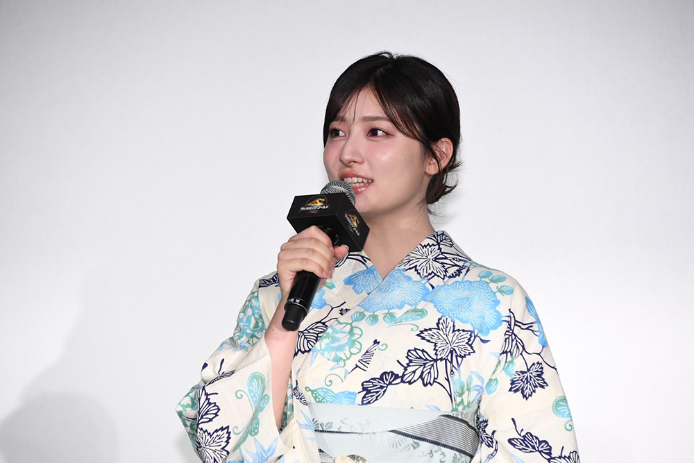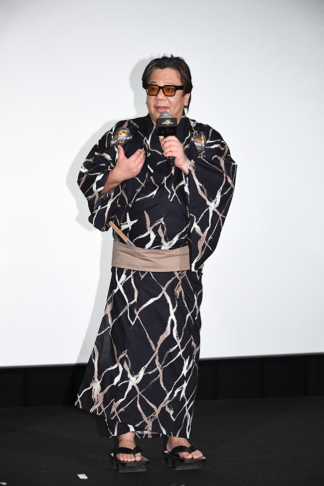 楠さんは本作のロゴが入った浴衣を着用し、「この浴衣は衣装さんが作ってくださったんですが、グッズもたくさん出ていて、僕もTシャツは相当買っています。今日観ていただいた後に、ぜひグッズも楽しんでいただけたらと思います」と鑑賞後にグッズを購入する楽しみもアピールしました。