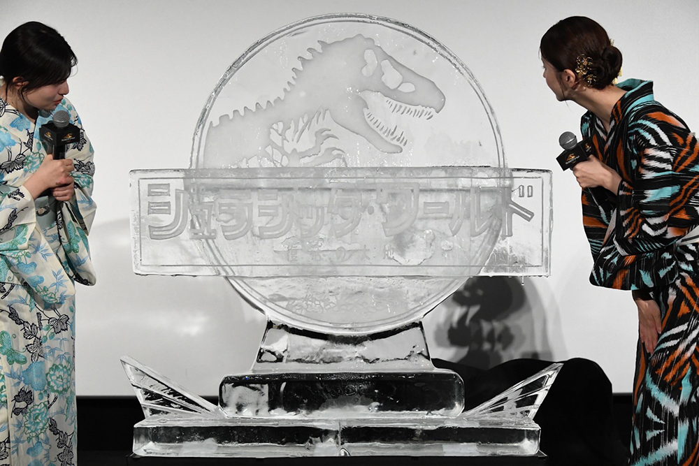 さらに、映画のタイトルをかたどった氷の彫刻が壇上に登場しました。これを見たキャスト陣からは「ええ~!」や「凄いですね」という感嘆の声が上がりました。制作には半日かかったと聞いたやす子さんは、「(吉川さんが)岩盤浴に入っている時間と同じくらいですね!」とコメントし、会場を笑わせました。