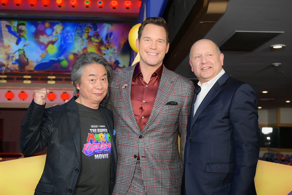 この日のために特別に敷かれた<ギャラクシーカーペット>にマリオ役のクリス・プラット、ピーチ姫役のアニャ・テイラー=ジョイ、ルイージ役のチャーリー・デイ、クッパ役のジャック・ブラック、キノピオ役のキーガン=マイケル・キー、クッパJr.役のベニー・サフディ、ヨッシー役のドナルド・グローヴァー、ロゼッタ役のブリー・ラーソンらキャスト陣がそれぞれの役をイメージした衣装で登場。さらに、イルミネーションCEOのクリス・メレダンドリ、任天堂代表取締役フェローにして“マリオの生みの親”である宮本茂も続きました。