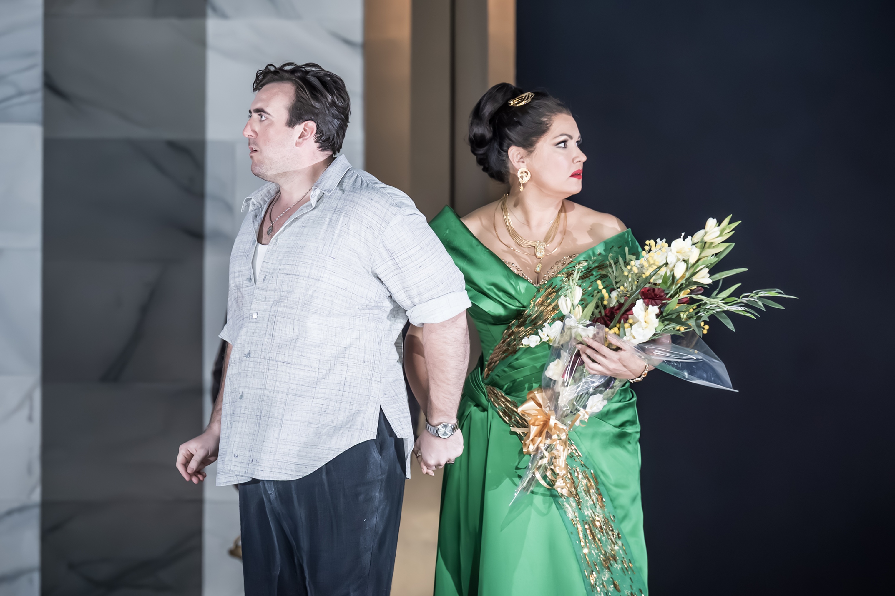 英国ロイヤル・オペラの新シーズン開幕を飾るのは、音楽監督に就任してから初となるヤクブ・フルシャの指揮に加えて、オペラ部門ディレクターのオリバー・ミアーズの新演出で贈る『トスカ』。本作は、近年において劇場が最も力を注いだ話題のプロダクションである。さらに、オペラ・ファンが待ち望んでいたトップ・スター、アンナ・ネトレプコがロイヤル・オペラに帰還!2019年の『運命の力』以来、コロナ禍とウクライナ情勢を背景に、英国の舞台から遠ざかっていた彼女が、ついに復帰を果たした。劇場前ではわずかな抗議活動も見られたが、公演はソールド・アウト。観客が固唾をのんで見守る中、ネトレプコは自身最高のトスカを歌い上げた。