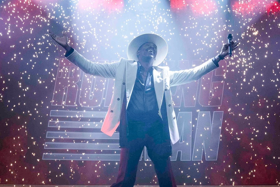 フードを被り覚悟を決めたような真剣な表情を浮かべる姿や、炎に包まれた建物内で逃走を図る絶体絶命のベンを捉えたカットが映し出されています。また、脇を固めるキャストも実力派揃いです。ベンをリアリティーショーへと誘う冷酷なプロデューサーは、「アベンジャーズ」シリーズのサノス役で知られるジョシュ・ブローリン。ド派手に番組を盛り上げる狂気の司会者には、第97回アカデミー賞🄬主演男優賞へのノミネートも記憶に新しいコールマン・ドミンゴが抜擢されています。